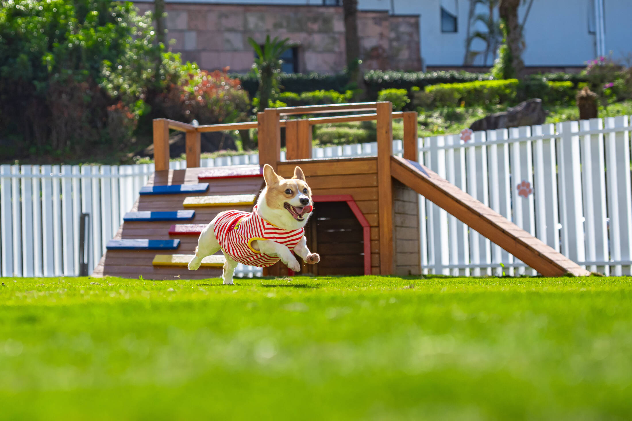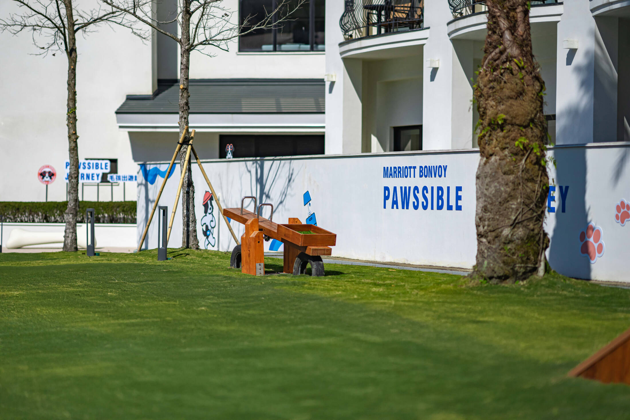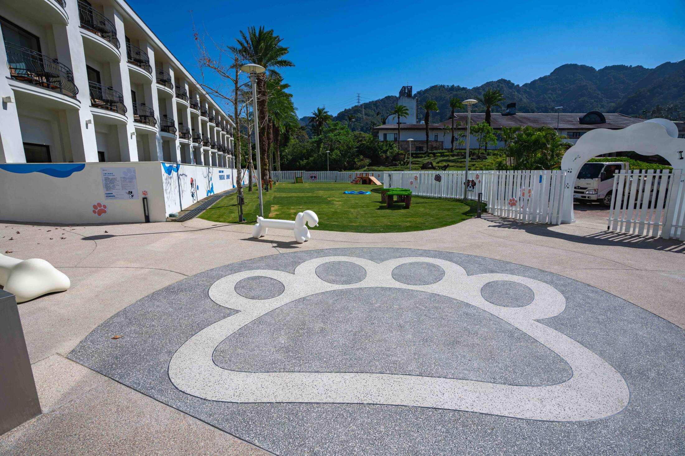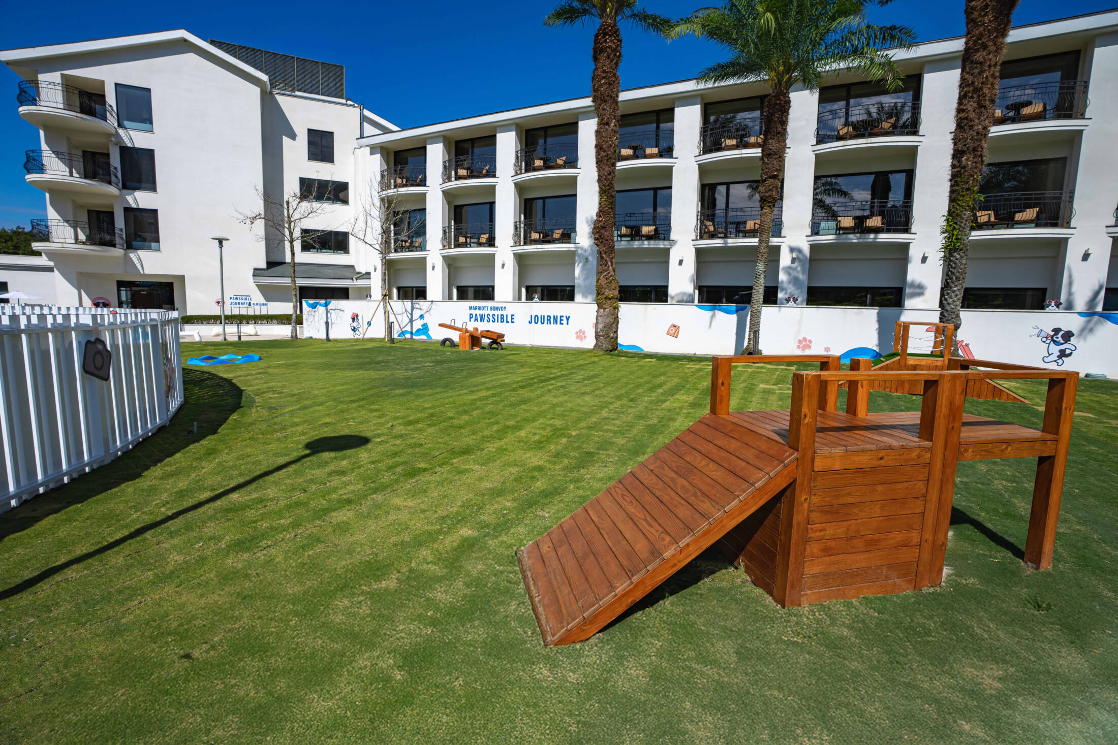 「威斯汀毛孩樂園」為北部首家設置於飯店內的狗狗專屬戶外綠地空間,兼顧安全性與活動多樣性,特別規劃多項適合狗狗活動的設施,包括觸覺步道、玩轉樹洞、溜滑梯、蹺蹺板、草皮攀爬屋等,讓毛孩能在寬廣綠地中盡情探索與玩樂。