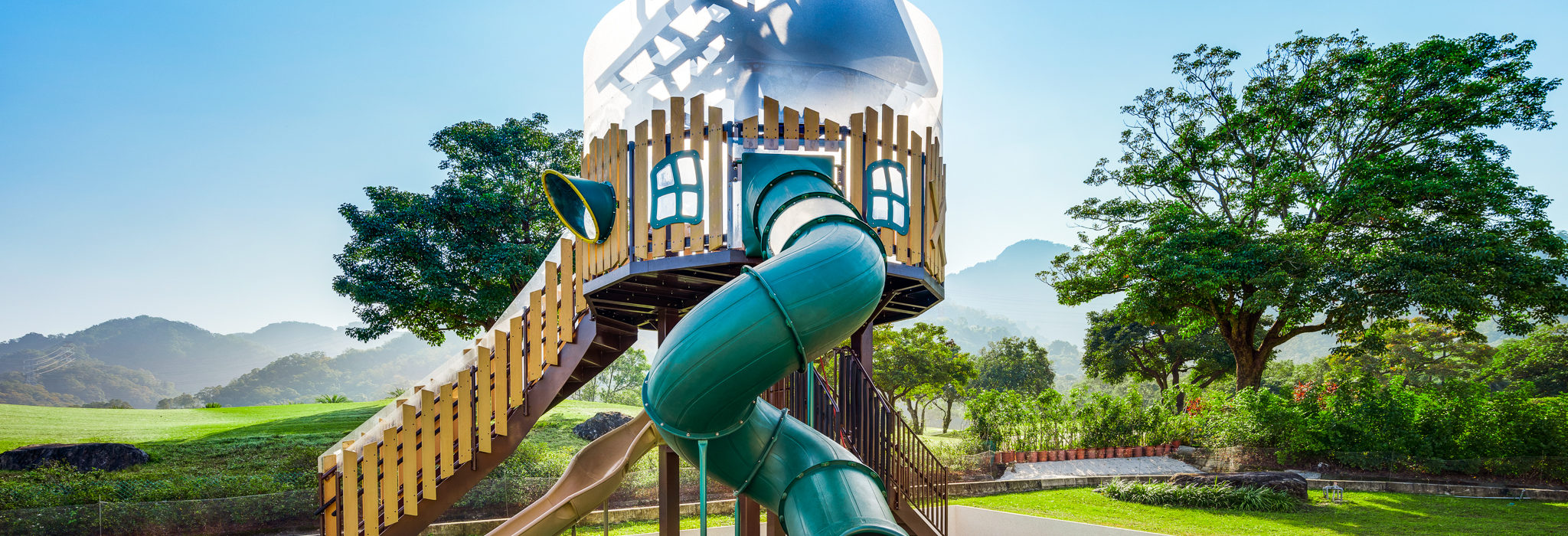 由日本百年品牌—國都樸基KOTOBUKI 設計製作,日本專業技師運送來台組裝,打造兩層樓高大型溜滑梯,著重安全無虞的戶外設施,適合您闔家一起體驗同樂。