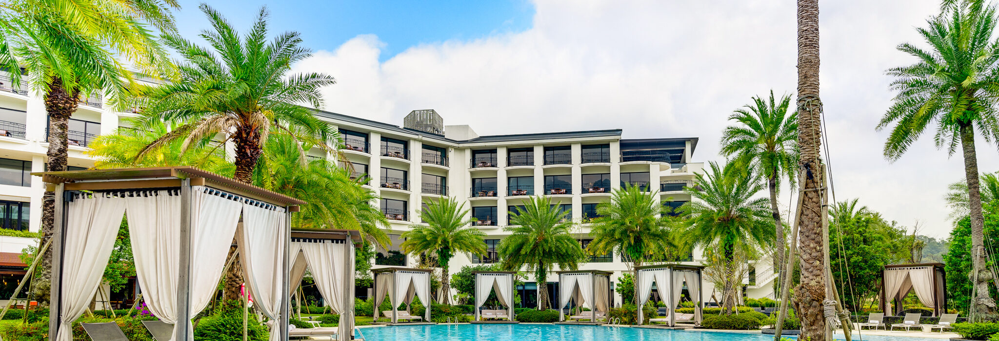全台獨有絕美南洋風情戶外游泳池,遼闊綠意視野映入眼簾,環繞熱帶棕櫚樹植栽,自在休憩於池畔周圍多間風格公主亭,宛如置身於美麗的度假島嶼般地閒逸悠活。戶外泳池全年開放,完善休閒設施包含兒童戲水區、滑水道及水中籃球,盡享美好假期的熱情與活力。